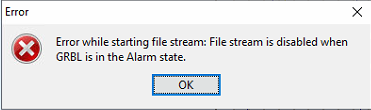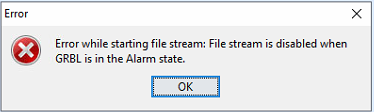 Grbl’s alarm mode is a state when something has gone critically wrong, such as a hard limit or an abort during a cycle, or if Grbl doesn’t know its position. By default, if you have homing enabled and power-up the Arduino, Grbl enters the alarm state, because it does not know its position. The alarm mode will lock all G-code commands until the ‘$H’ homing cycle has been performed. Or if a user needs to override the alarm lock to move their axes off their limit switches, for example, ‘$X’ kill alarm lock will override the locks and allow G-code functions to work again.