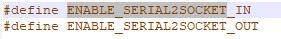 I found in the config.h file the ENABLESERIAL2SOCKETIN and ENABLESERIAL2SOCKETout.