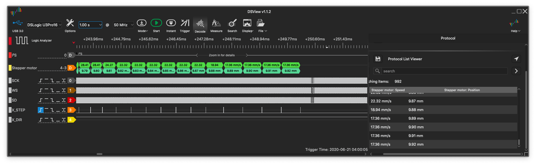 With this implementation, you can operate a Trinamic SPI CS connected to I2S and not notice the delay.