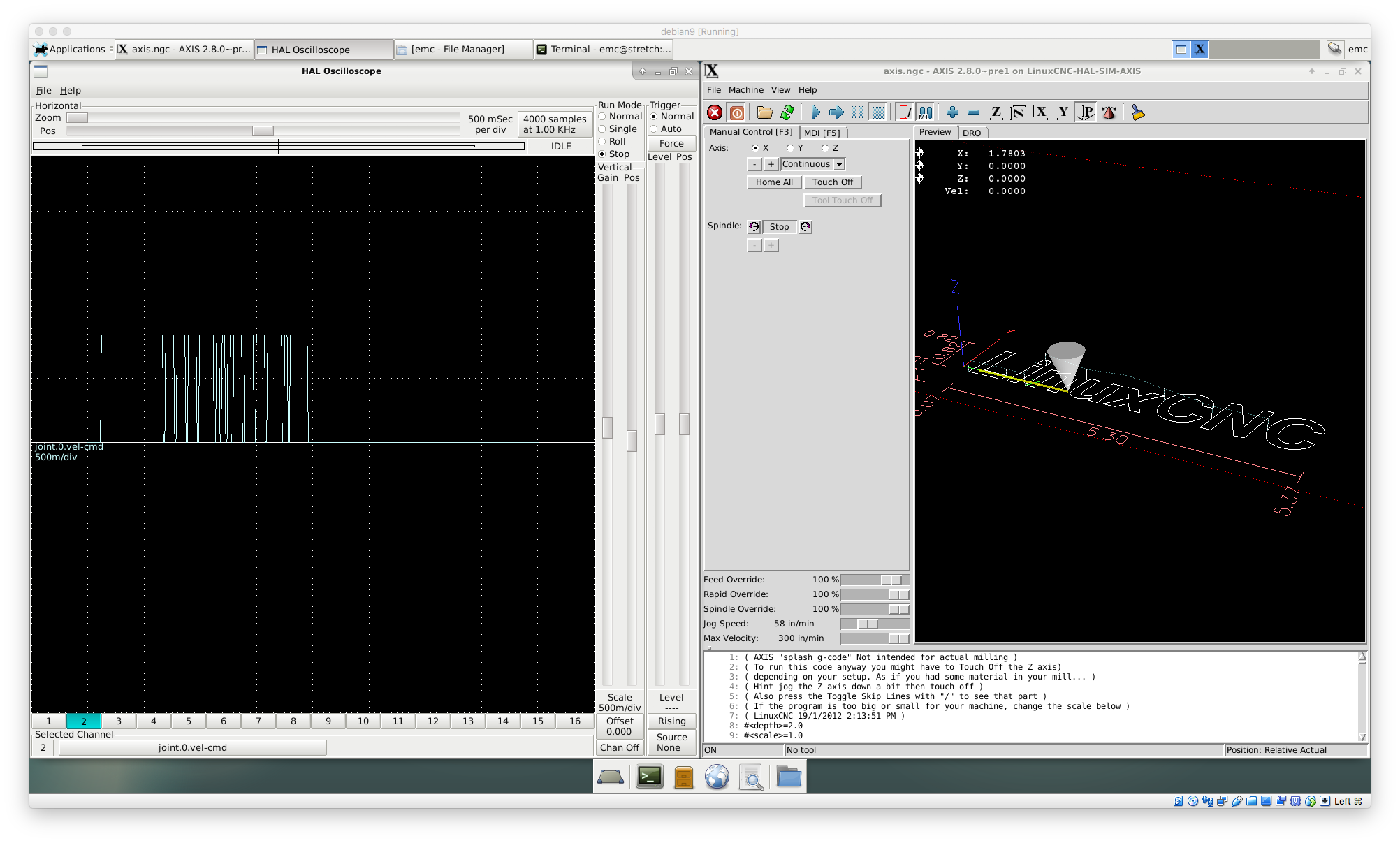1. start sim/axis/axis.ini